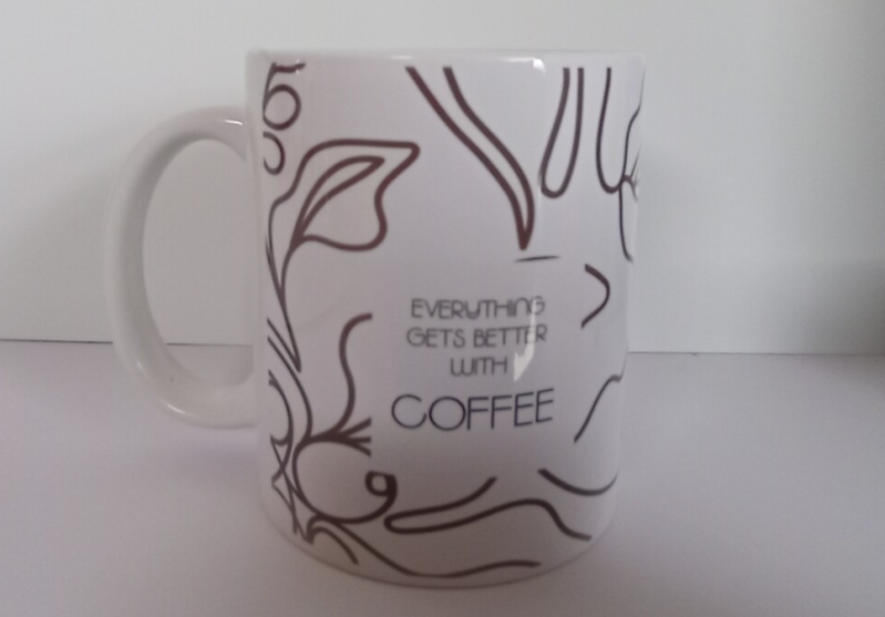 Elegante sierlijke bloemen motief bedrukking met quote over koffie.